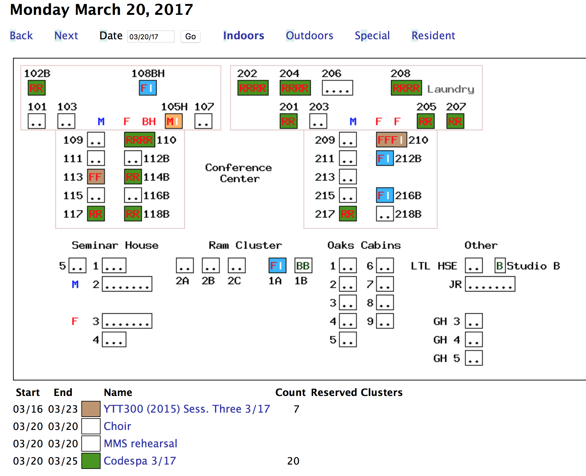 There is a link in the menu titled 'Arrangements' and 'Email Arrangements'. This is an email sent to the Contact Person and the Contract Signer that explains many things - housing procedure, gate code, schedule, meeting space setup, sound equipment, map, food service, etc. Here is an example. Again, it has been marked up with yellow highlighting. One special paragraph is not in this particular arrangements letter has to do with the case where Seminar House rooms are used for sleeping.