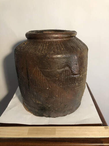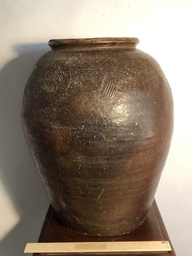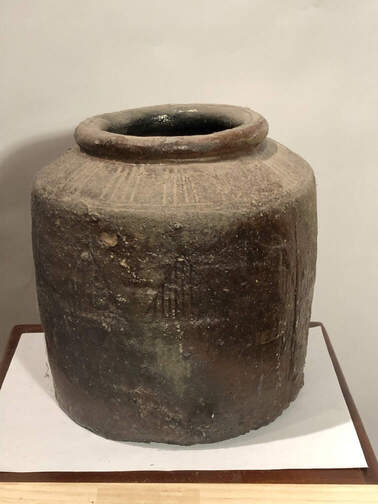 ![]() #239 - Ceramic container, large, heavy, with top, pointed surface, North African |