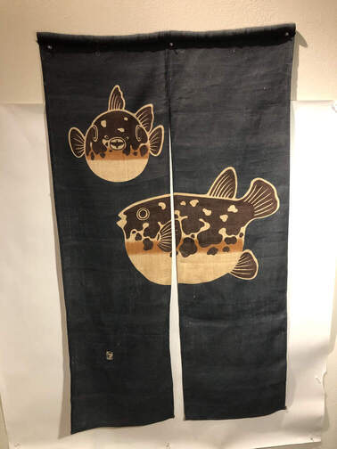 #248 - Japanese door hanging, 34.5"x60", blue/fish |