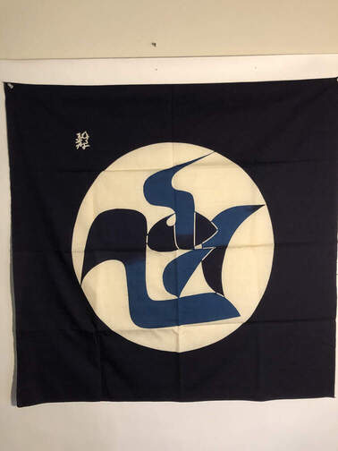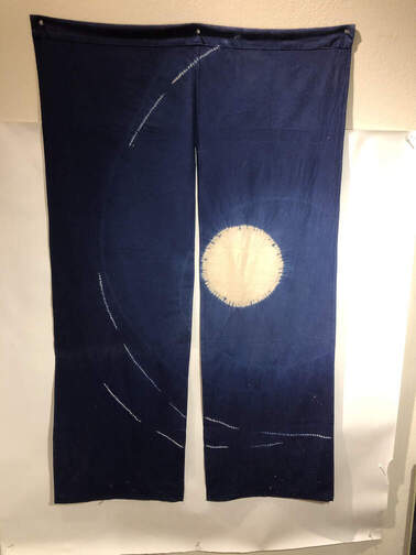 #249 - Japanese door hanging, 35"x58", blue/white circle |