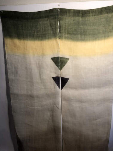 #748 - Japanese door hanging, 34"x55", green/yellow/brown |