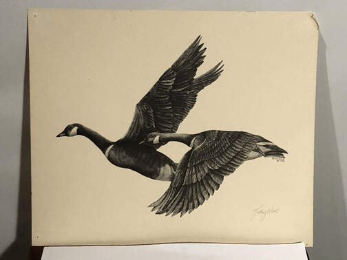 #267 - Drawing of two geese flying |