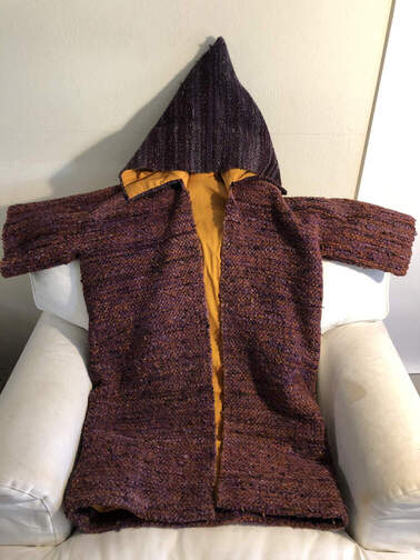 #403 - Hand-woven woolen heavy coat with hood, by Shawcroft, 46"x40" 3 pictures |
