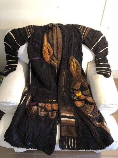 #404 - Hand-woven woolen decorated coat, Beautiful but too heavy to wear!, 45"x30", sleeves 24" long 6 pictures |