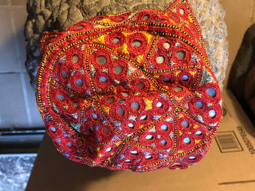 #786 - Hat, Red with mirrors and triangles 3 pictures |