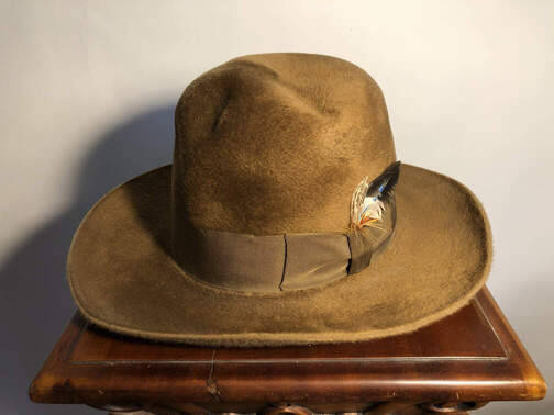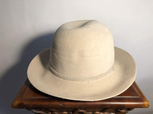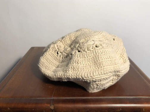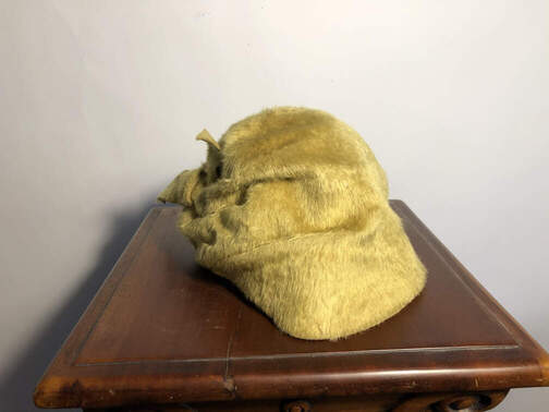 #799 - Hat, mustard, odd shape, very wide, with wire |