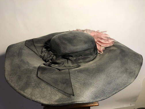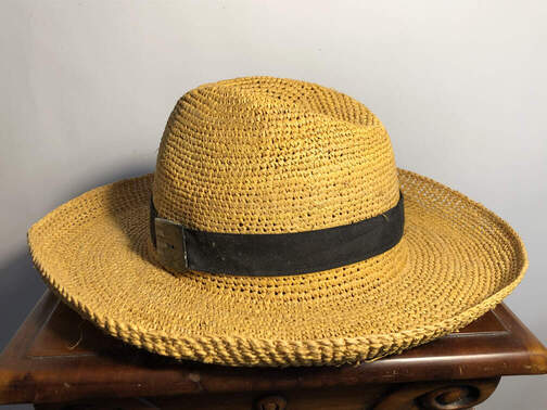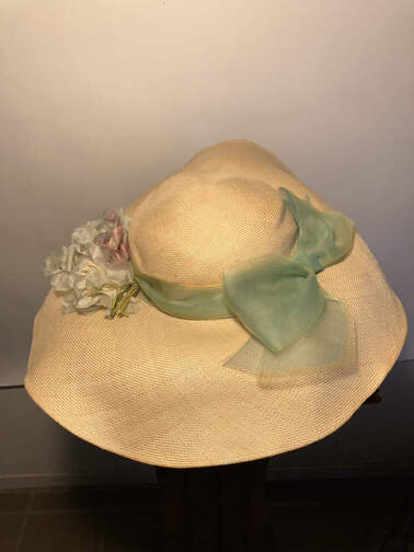 #M2 - Hat, straw, wide brim, floral ribbon |