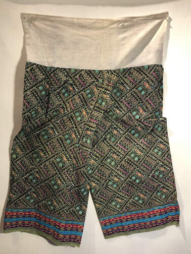 #C143 - Cotton pants geometric design red/blue/black/gray, rollover waistband - Culottes 3 pictures |