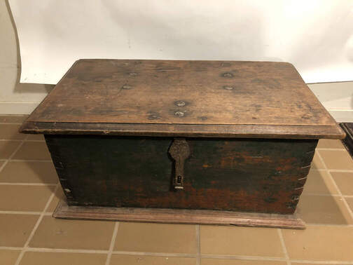 #479 - Antique wooden chest, 27"x15"x12", Metal hinges and latch 6 pictures |