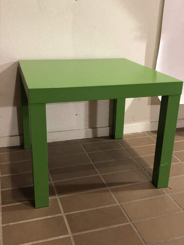 #483 - Four colorful tables, 22"x22"x18", green, blue, yellow, red 2 pictures |