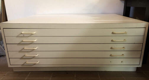 #F4 - Five Flat Drawers, white, for drawings, blueprints, 36"x47"x19" 3 pictures |