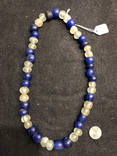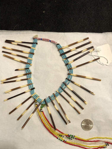 #J105 - Necklace, beaded, blue glass, porcupine-quill-like |