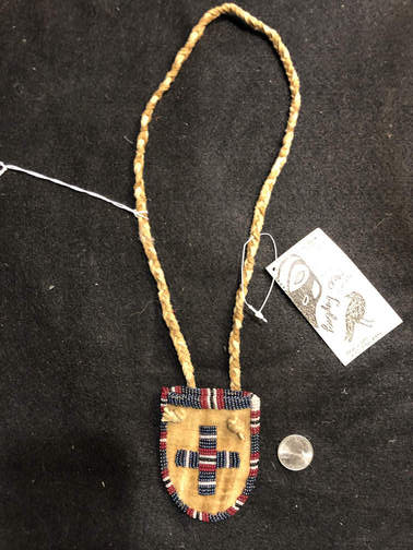 #J111 - Necklace, leather, with pouch, Medicine bag |