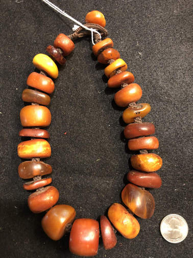 #J119 - Necklace, large opaque amber beads, with one metal bead |