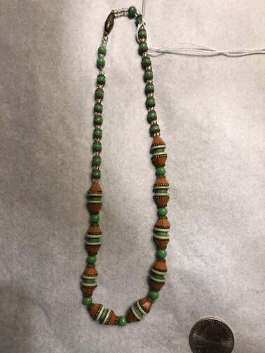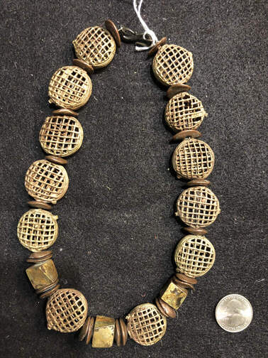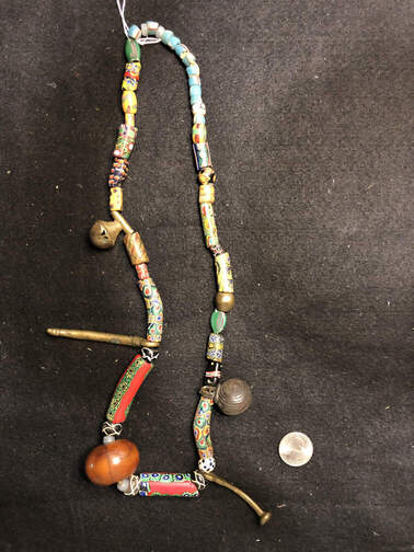 #J138 - Necklace, colorful beads, elaborate, brass, rather eclectic |
