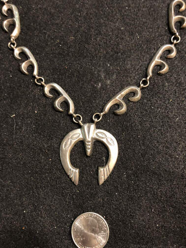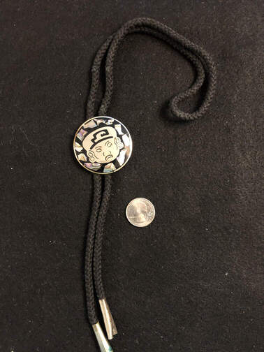 #J57 - Necklace, Bolo tie, Aztec design, silver, mother of pearl |