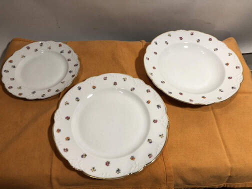 #480 - China, German 1800's, 6 dinner plates, 6 small plates, 6 shallow bowls, 5 diverse serving dishes 8 pictures |