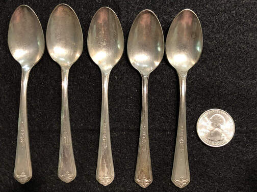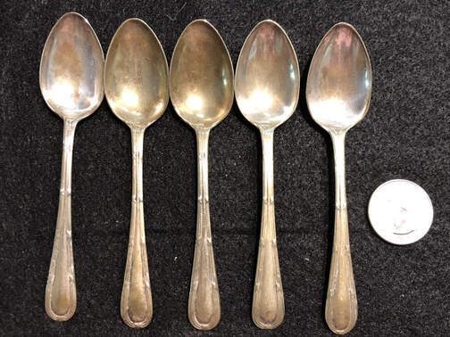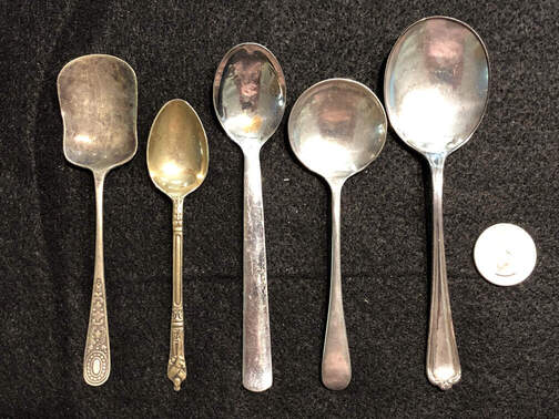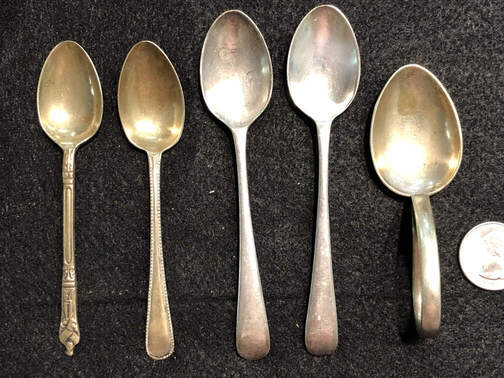#J309 - 5 misc spoons #2, baby spoon with handle |