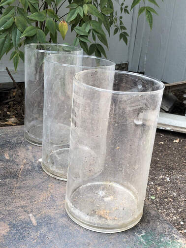 #P39 - 3 glass cylinder jars 10" high 6" diam |