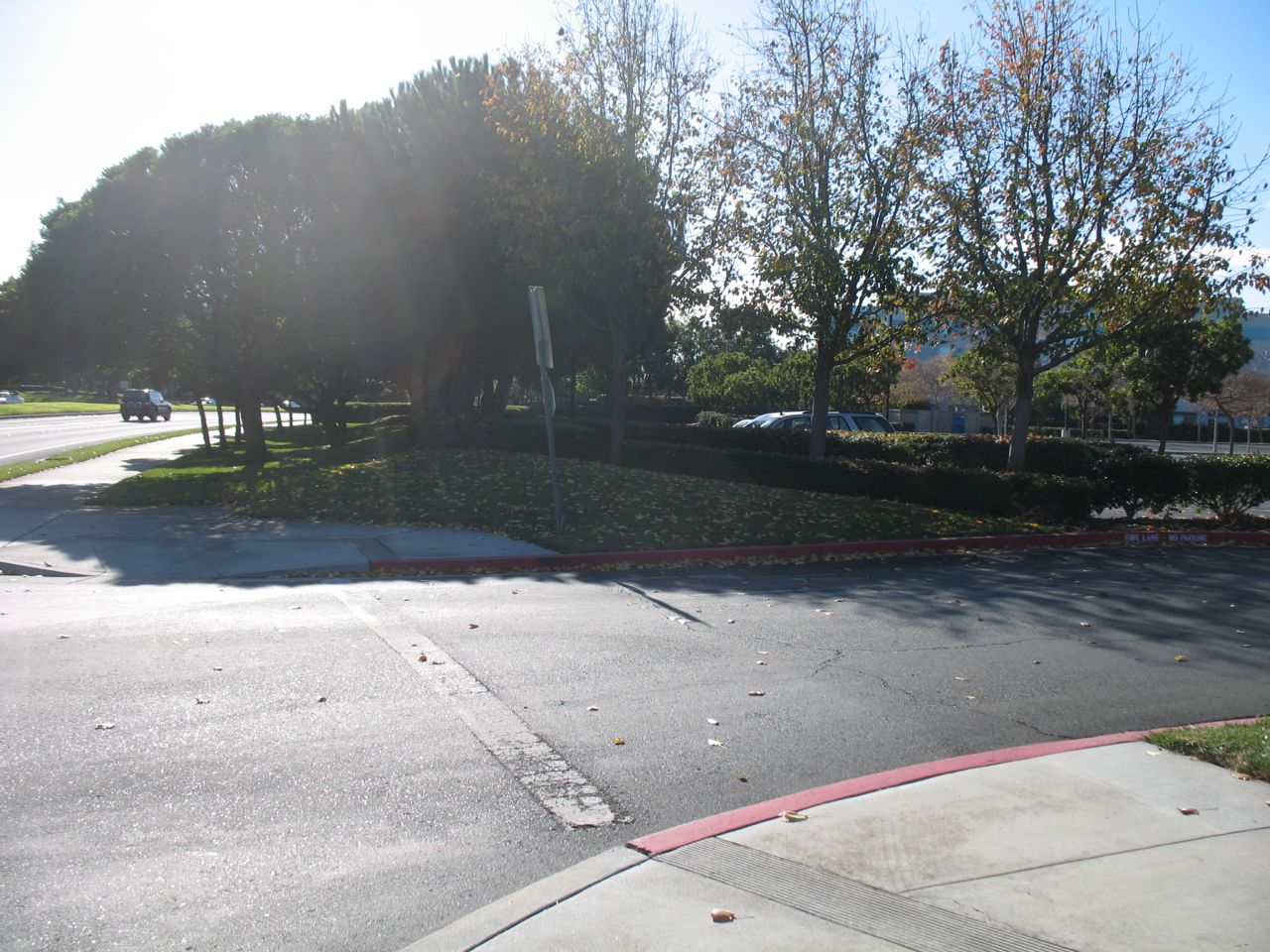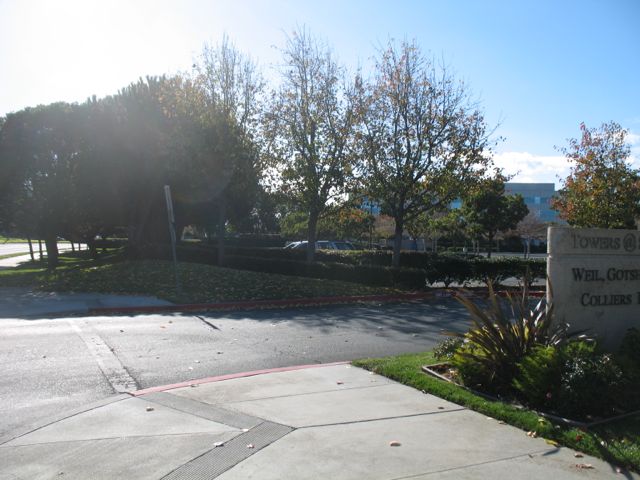 Coming to the end of the pathway - approaching the sidewalk along Redwood Shores Parkway.