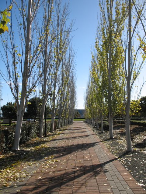 The EA (Electronic Arts) pathway. A beautiful tree-lined royal road. Who would not enjoy riding their bike down it? Why would anyone get off their bike and walk it, instead?