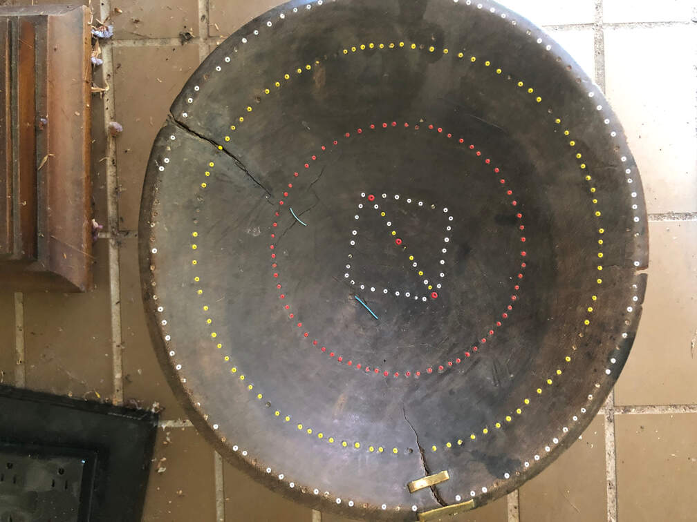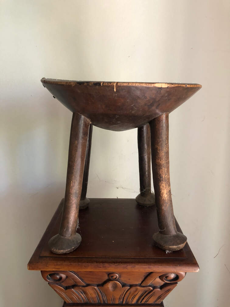 #15 - 4 legged stool/bowl, top has dots as decoration