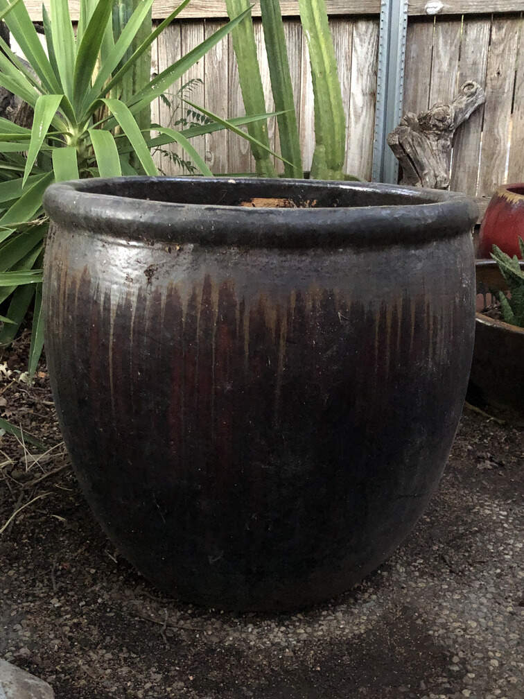 #180 - Pot, dark brown 21" high 23" diam