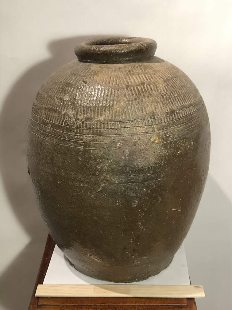 #266 - Vase, ceramic, large, dark gray, etched design on top