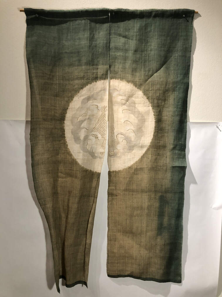 #271 - Japanese door hanging, two panels, dark green, white circle