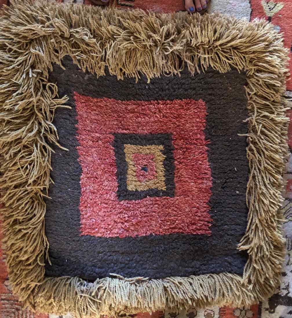 #29 - Wangden Tibetan wool rug, torn, soiled, 37"x34"