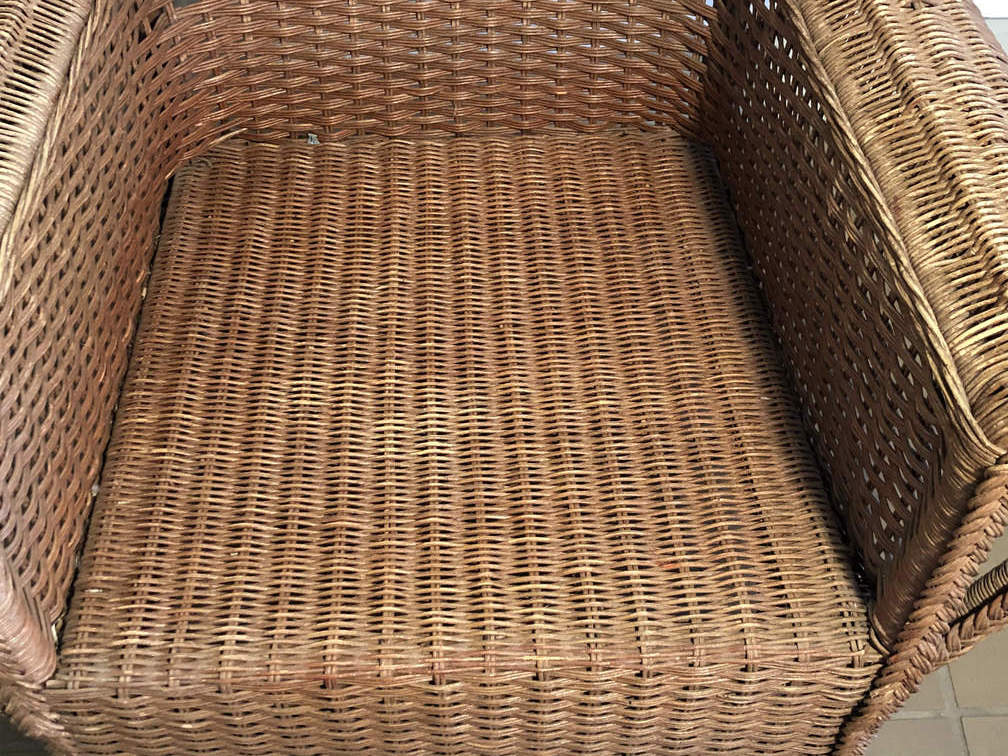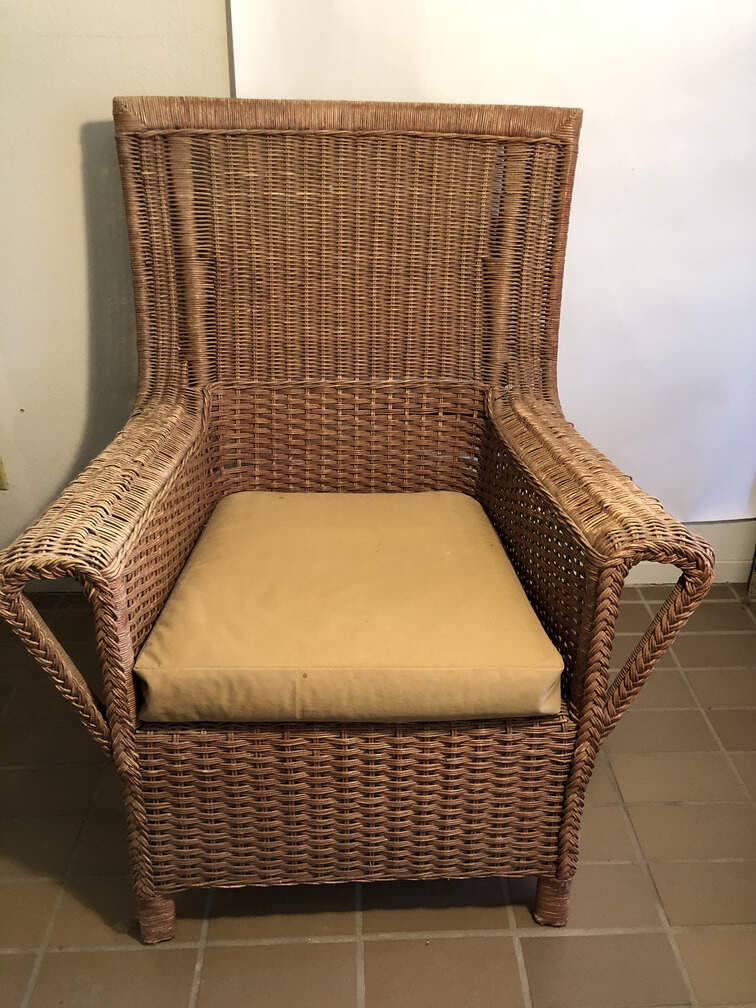 #405 - Rattan Chair, 39"x31"x28", yellow cushion
