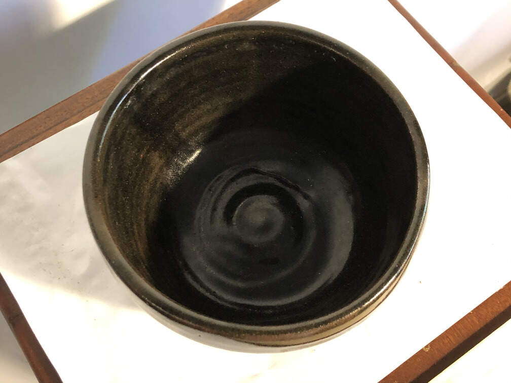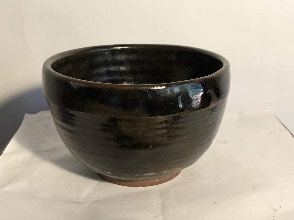 #424 - Bowl, blackish, 3.75" high, 6" diam