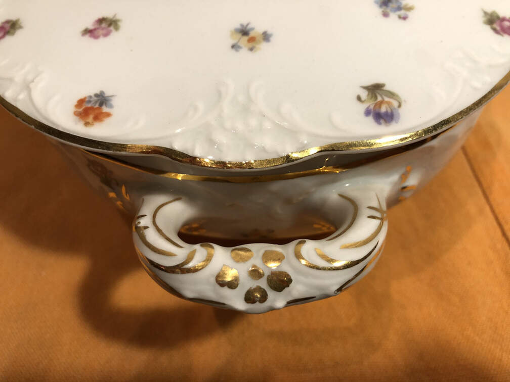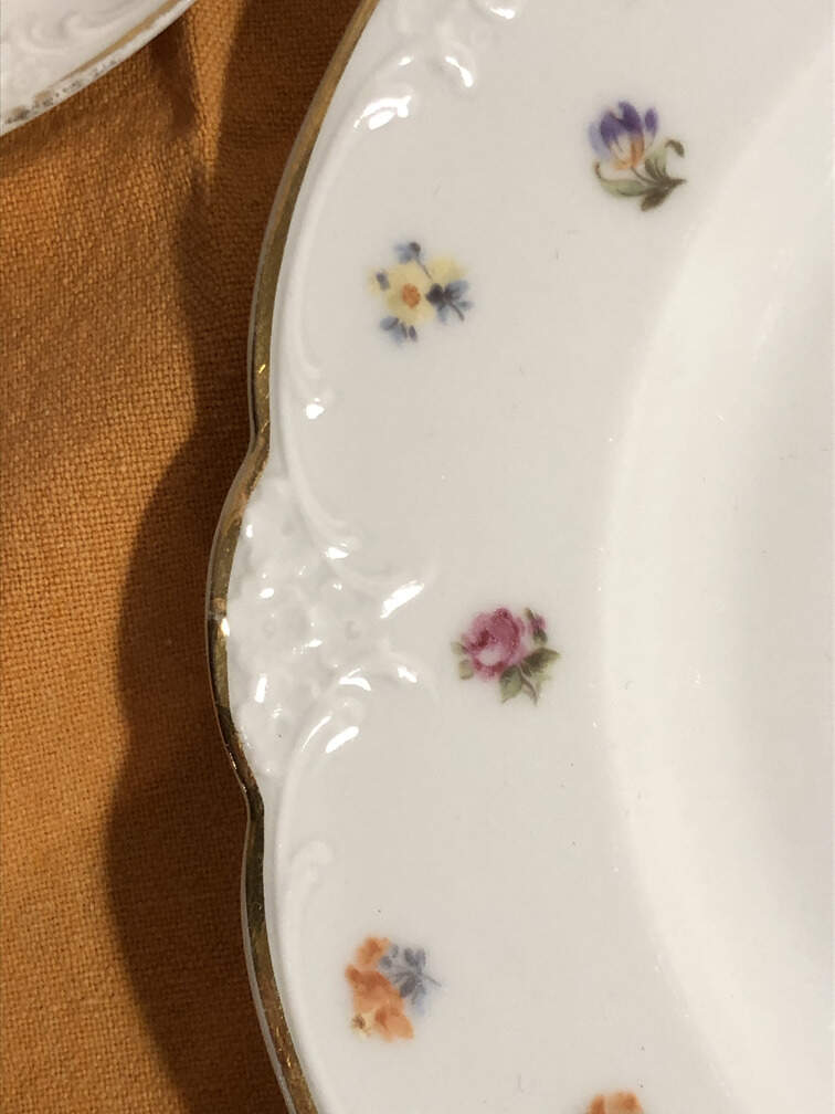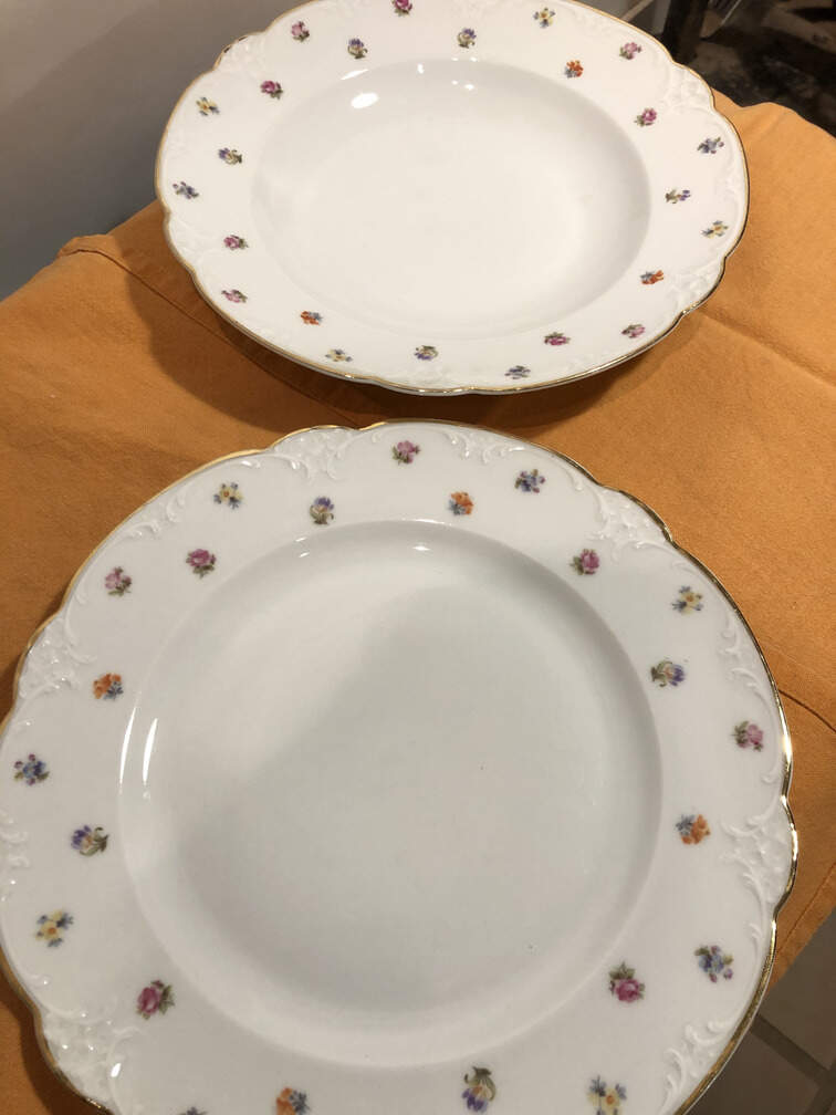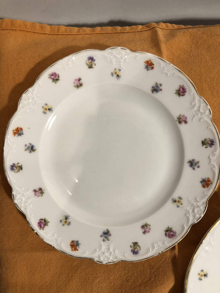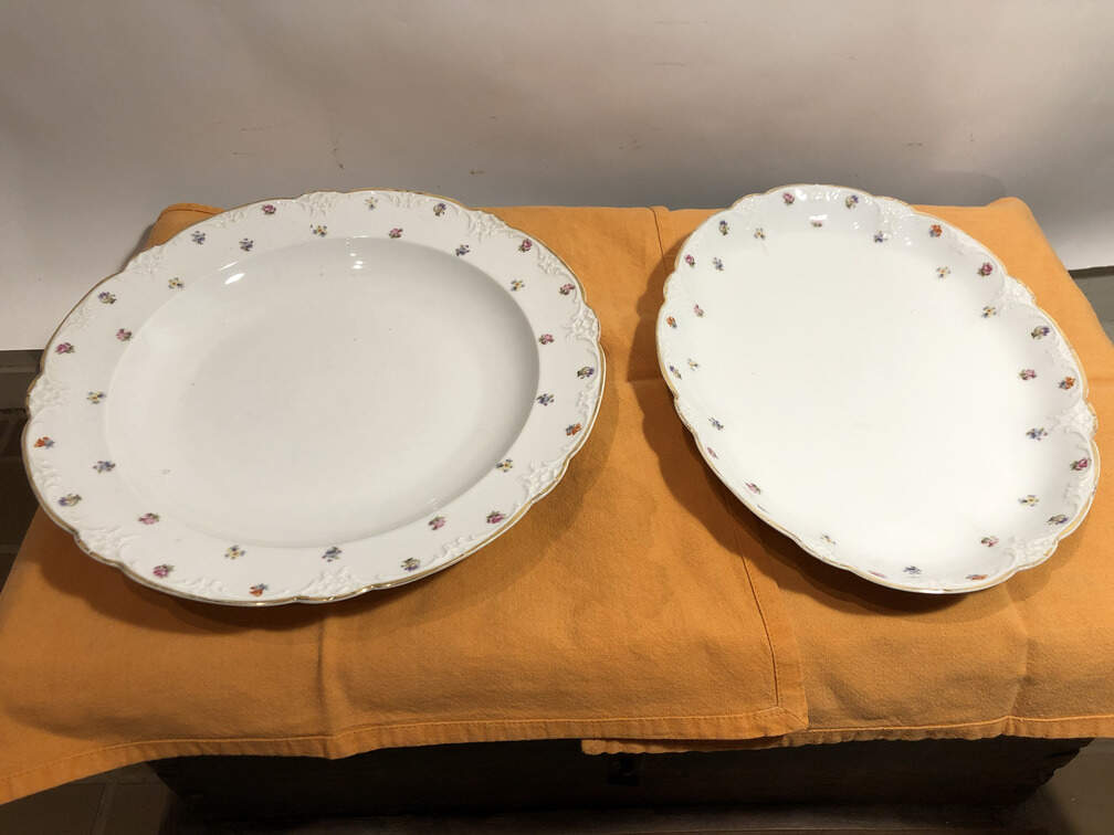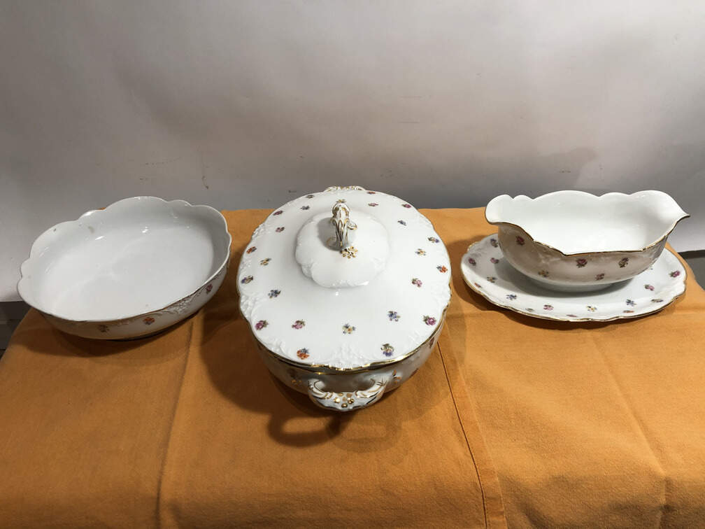 #480 - China, German 1800's, 6 dinner plates, 6 small plates, 6 shallow bowls, 5 diverse serving dishes