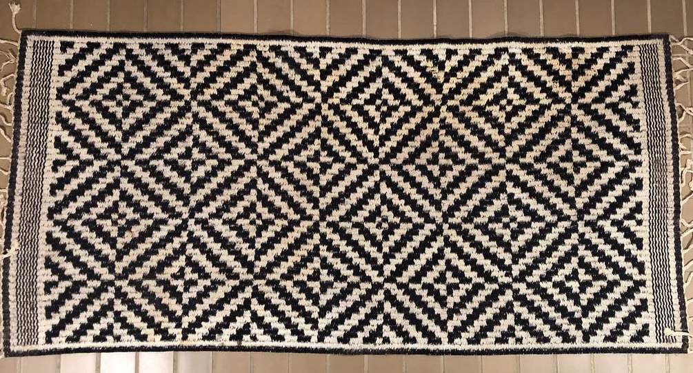 #506 - Rug, flatweave wool/cotton diamond pattern 37"x78"