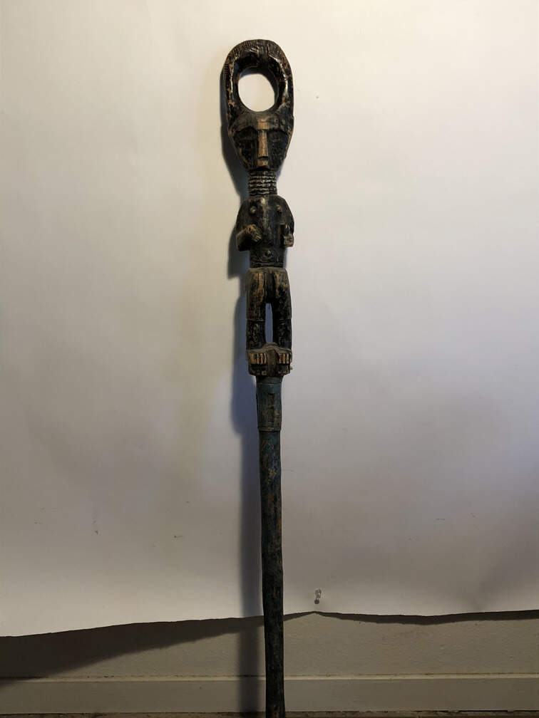 #712 - Walking stick with indigenous totem design