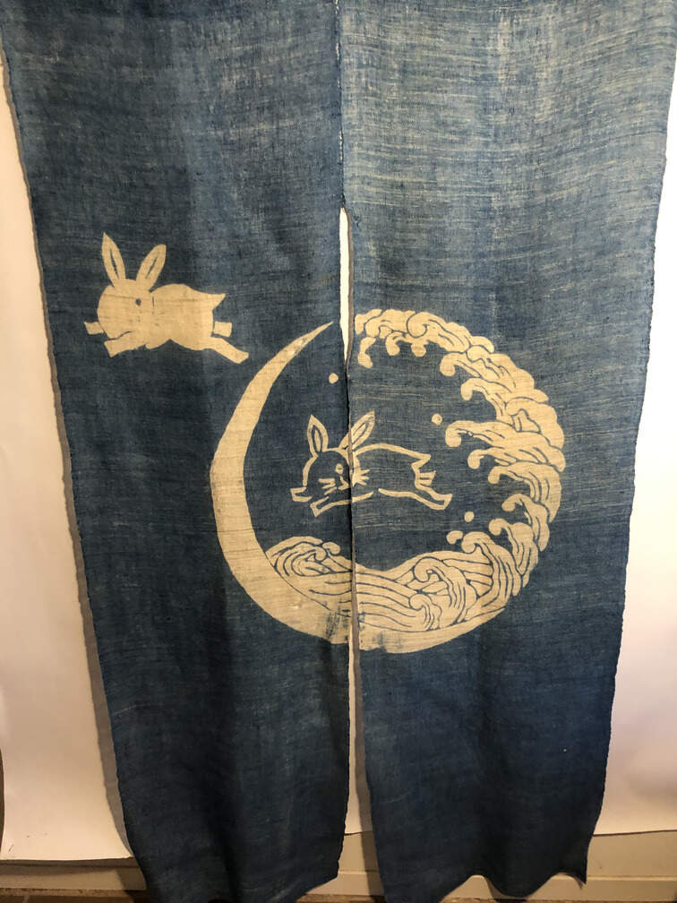 #752 - Japanese door hanging, 34"x60" , blue, rabbit design