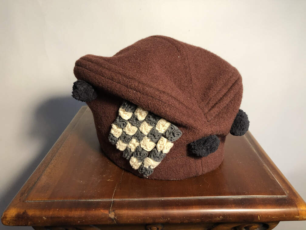 #798 - Hat, purple felt, checkerboard decoration