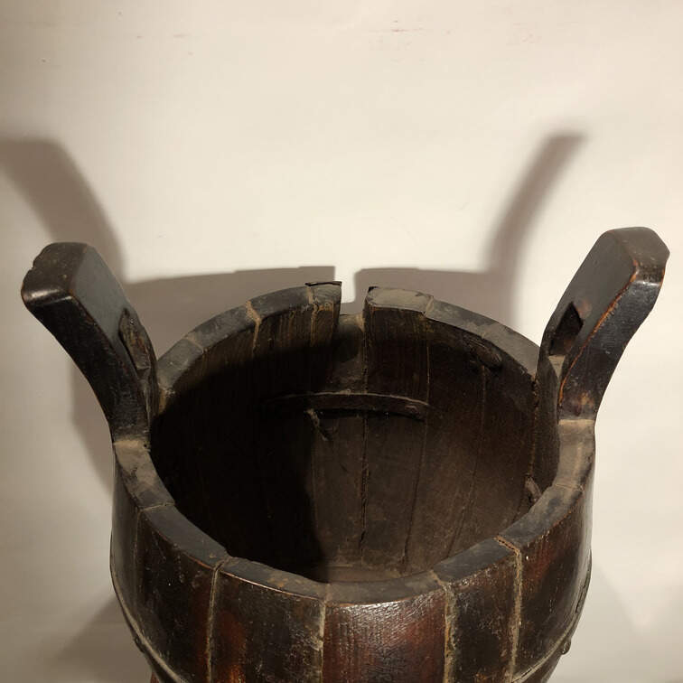 #8 - Wooden bucket 11" tall (handles make it 14" tall) with top