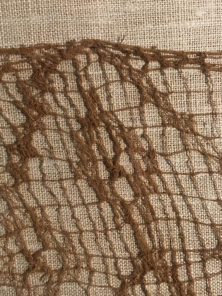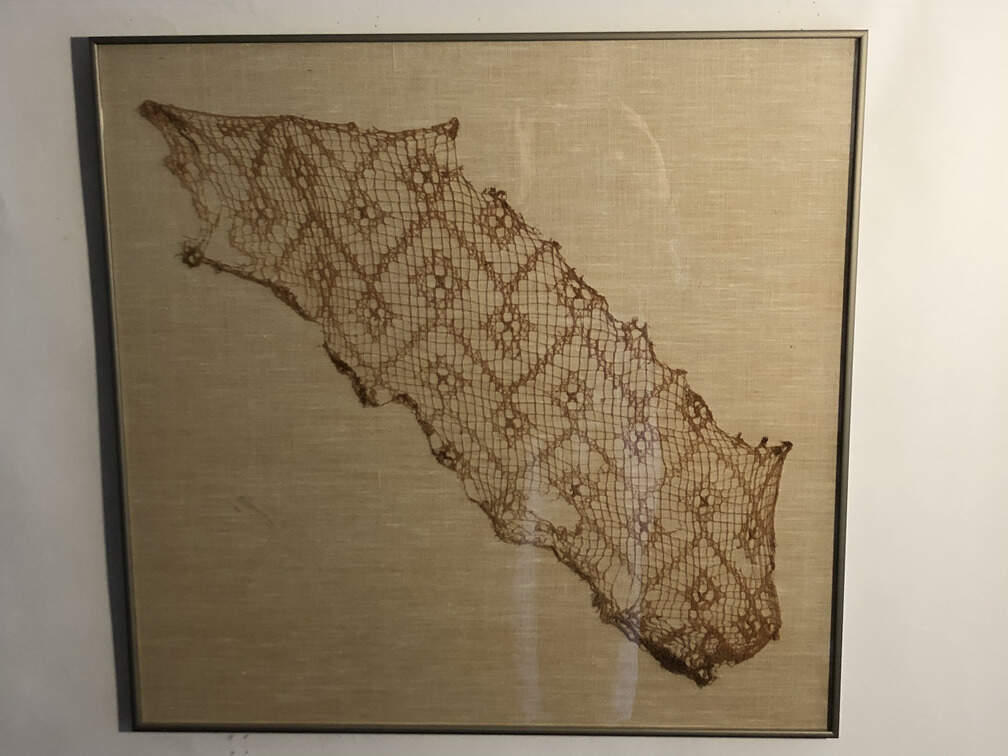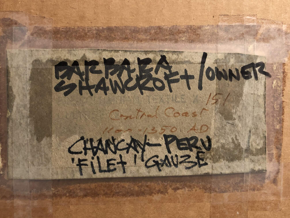 #841 - 'Filet' Gauze, Peru, Chancay culture, 1100-1350 AD, framed