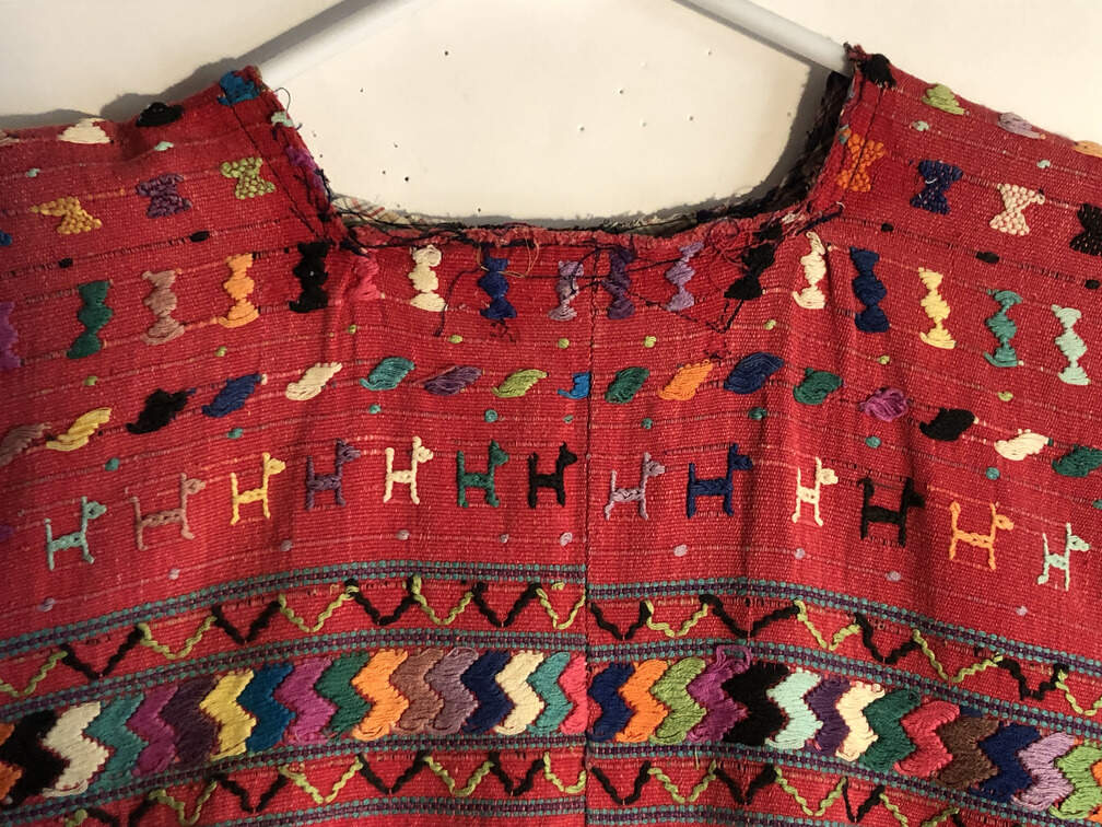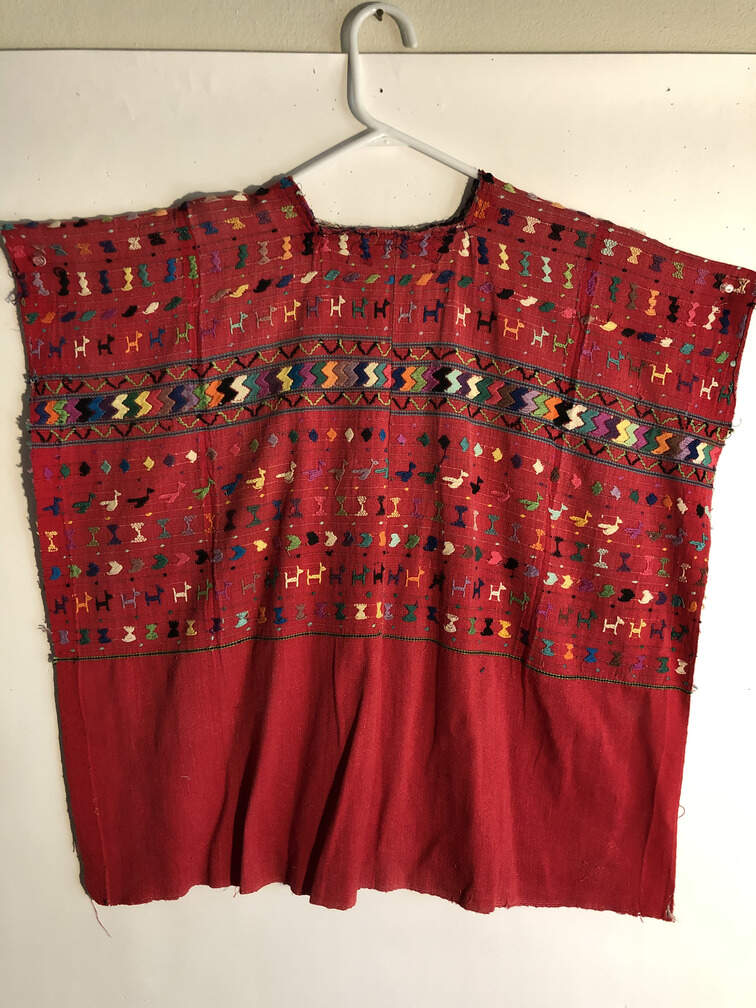 #A12 - Red embroidered blouse, Juipil, sides to be hemmed