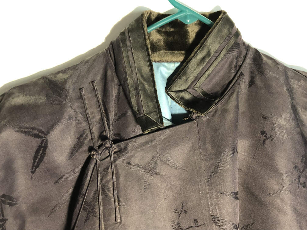 #A22 - Jacket silk black jacquard knit bamboo pattern traditional Chinese men's blue lining