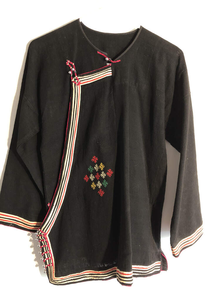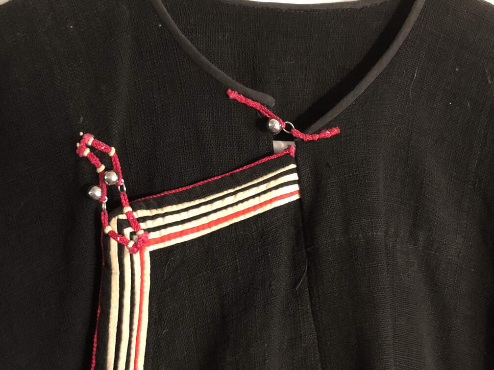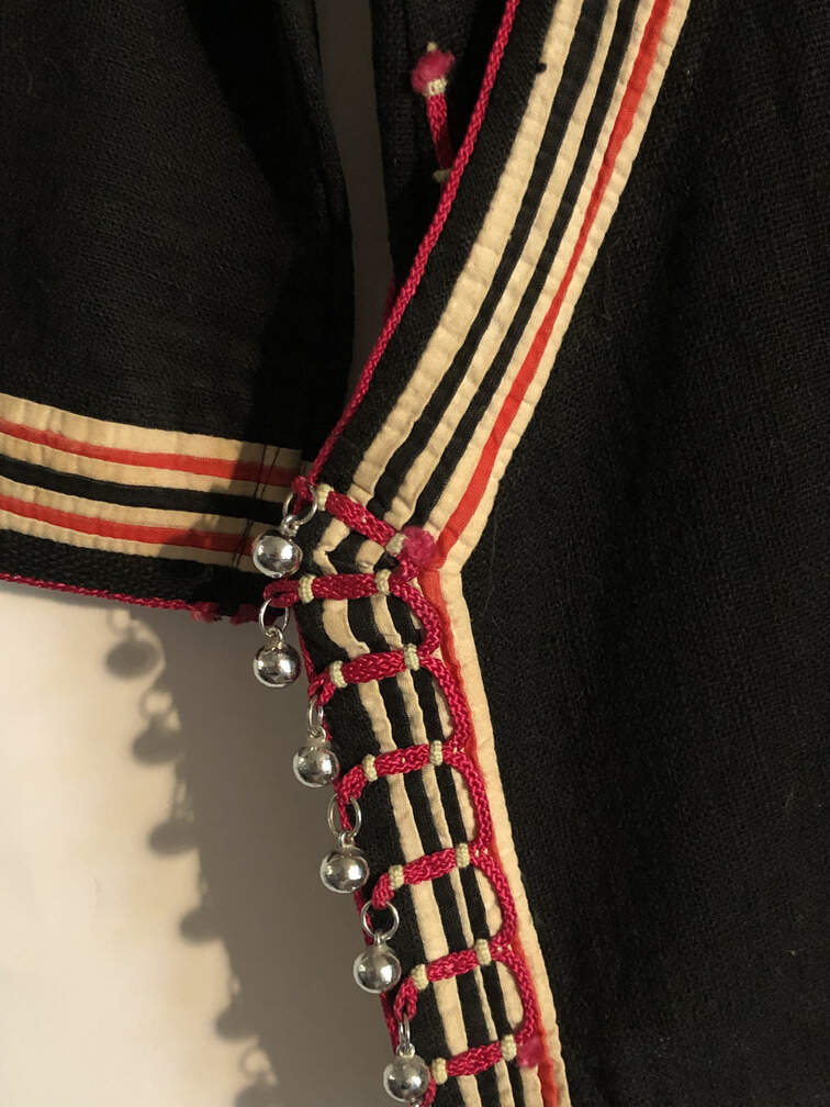 #A23 - Jacket Nepalese black stripe along edges and cuffs with silver beaded embroidered with snowflakes