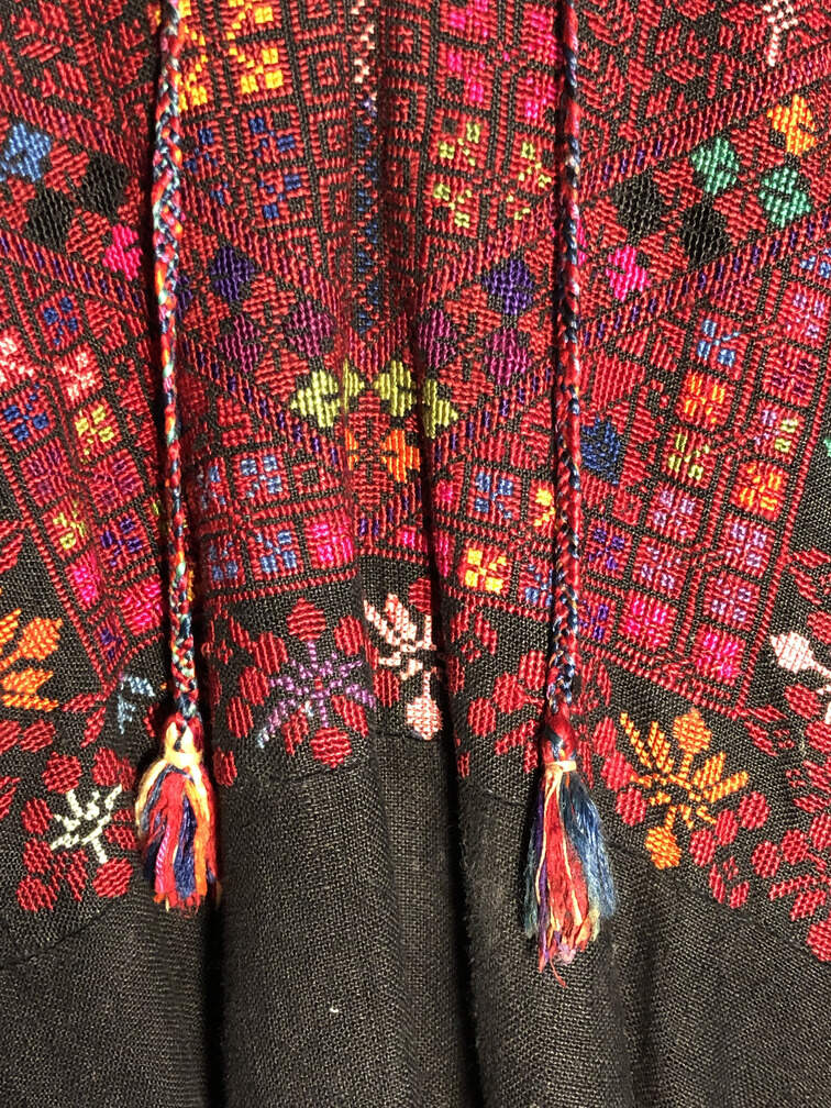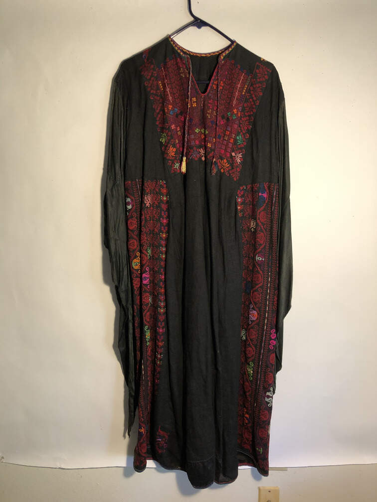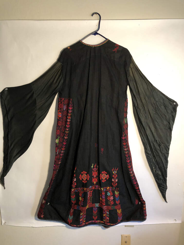 #A28 - Dress black long red machine embroidery fancy sleeve design. Back embroidery