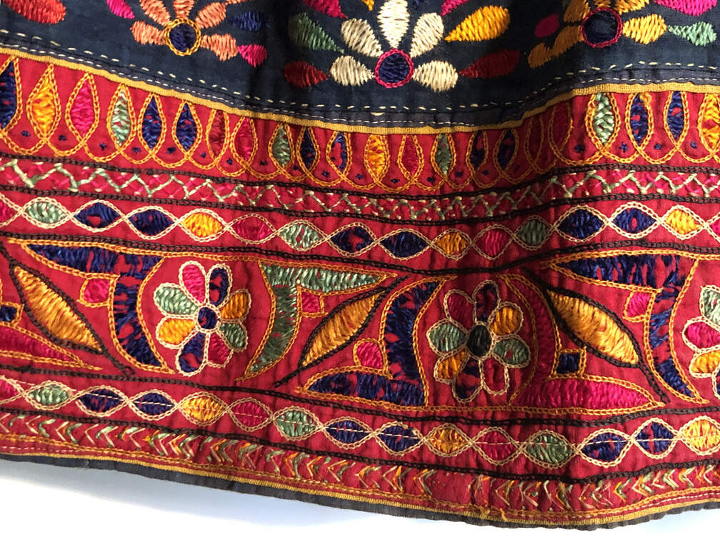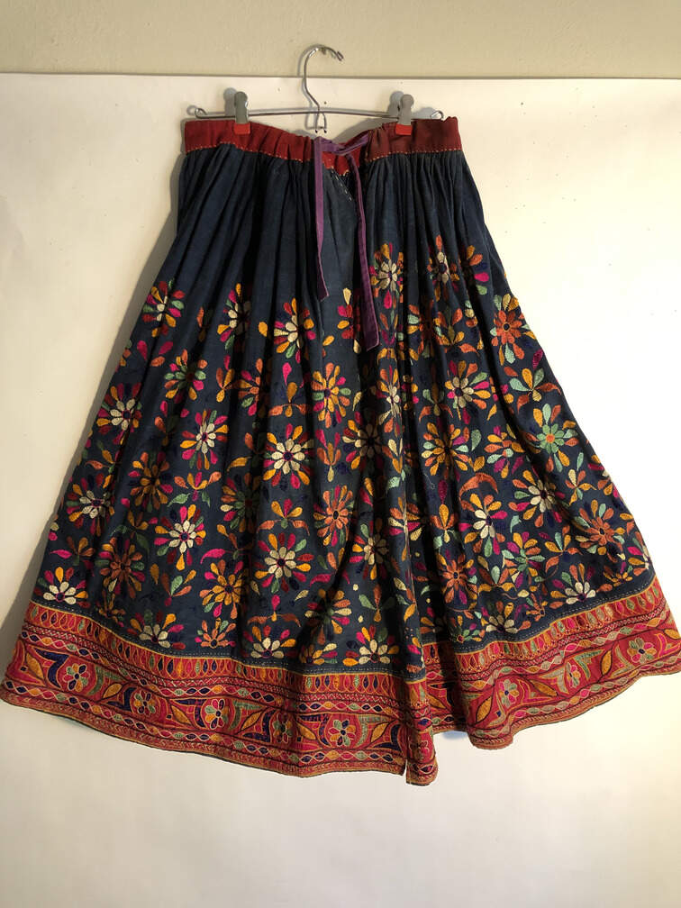 #A8 - Dark blue skirt flower embroidered spectacular hem
