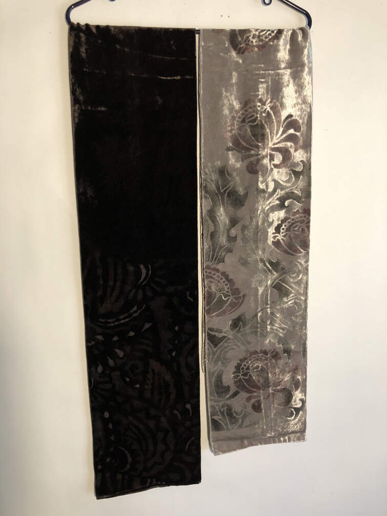 #C112 - Two velvet hand painted scarves, from Venice, Italia, with care instructions