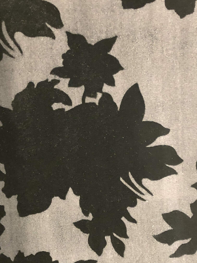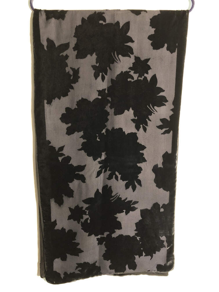 #C139 - Scarf black velvet silk floral design 15"x60"