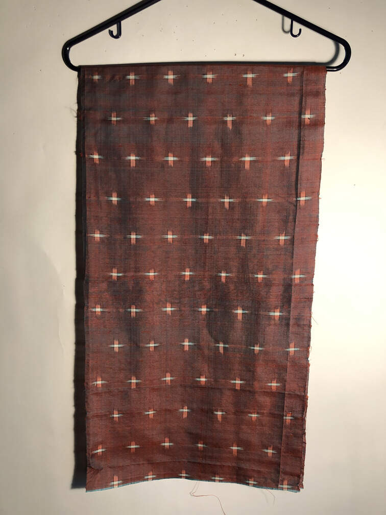 #C140 - Silk fabric light red, white spots design IKAT 14"x54"