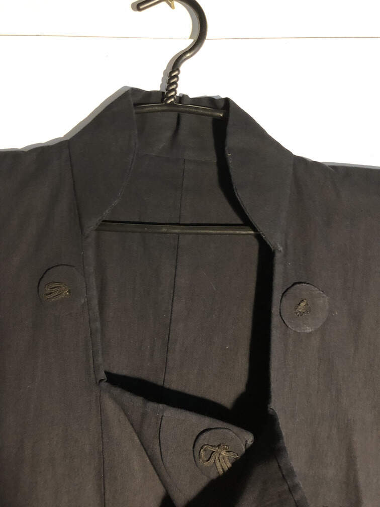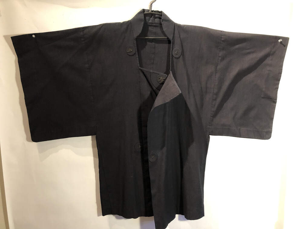 #C150 - Black jacket Japanese design heavy cotton, kimono style sleeved fabric buttons