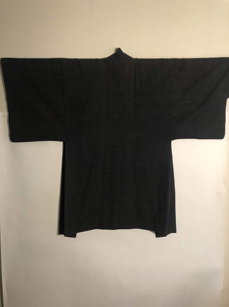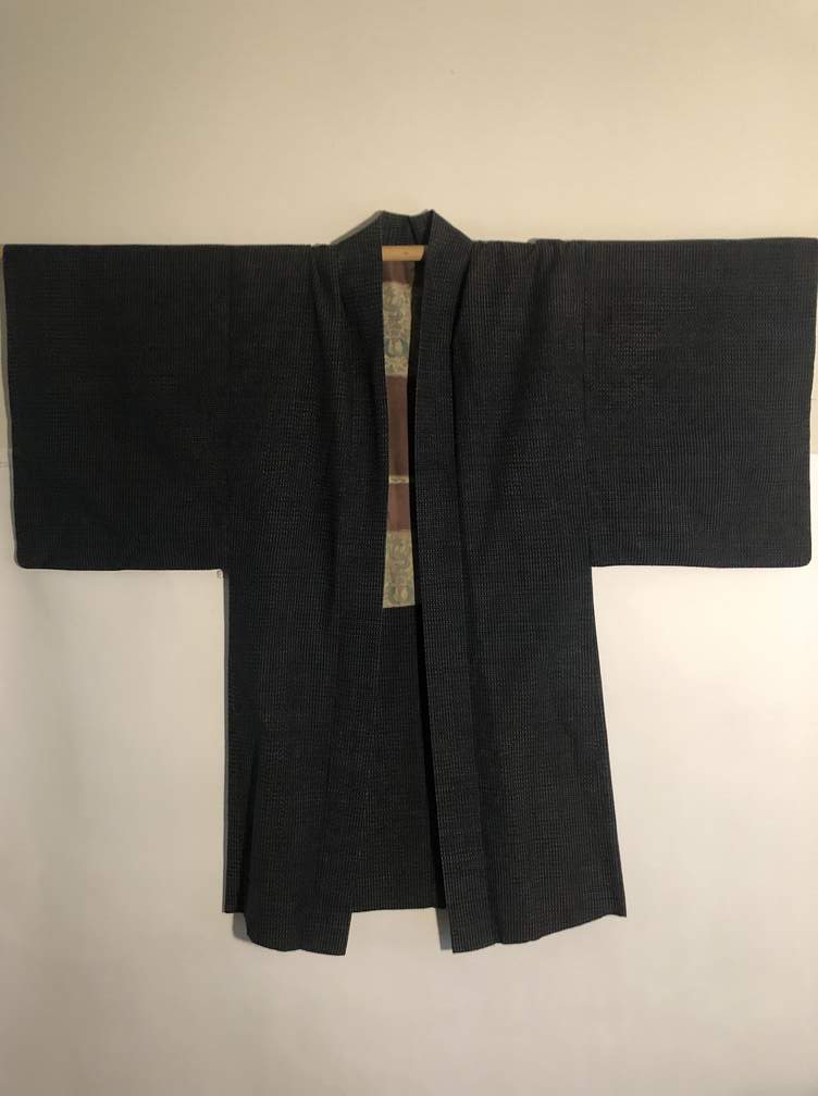 #C21 - Kimono, black, lining w/ brown & blue squares