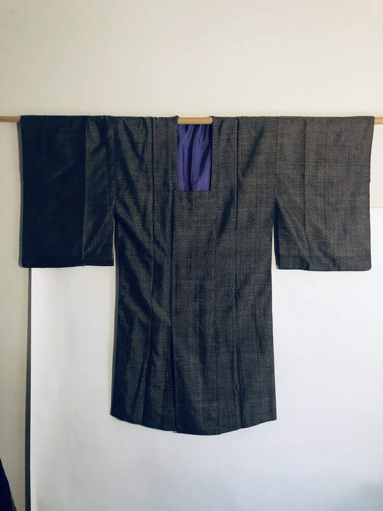 #C29 - Kimono, brown silk, purple lining